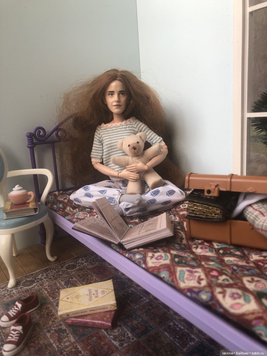 У Гермионы классный мишка! Вообще мне нравится её комната, очень светлая и уютная. И книжный рай ;)