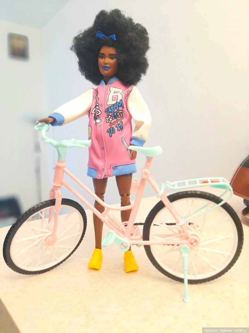 Джесси тут шарнирная. Куклой играли, поэтому шарниры не в лучшем состоянии, но стоять она может. Прошивка хорошая, волосы без потерь. У Кики шарнирные ножки, руки «под велосипед». Малышка — формат роузбадика, руки и ноги двигаются. У «детёнышей» волос кажется, что мало, но при этом в причёске это совсем не бросается в глаза. От аксессуаров я вообще в восторге!) У велосипедов и скейтборда колёса крутятся, шлемы с застёжкой, игрушка из резины, рюкзак тканевый (внутри одно отделение, закрывается на липучку, есть также внешний карман). Всё очень детализировано! Единственное, что мне не понравилось — это соразмерность бутылки для воды, ну она какая-то огромная прям как канистра:).
