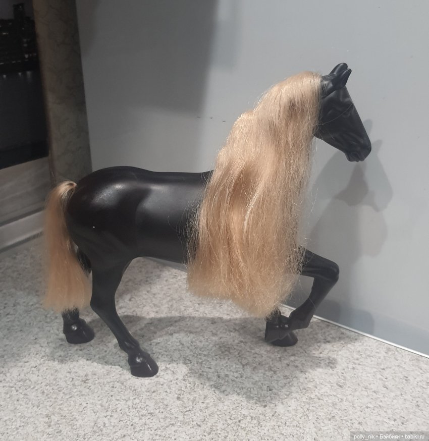 Благодаря съёмкам сказок у нас 4 реалистичных коня, но самый любимый это пластмассовый пегас со светящимися крыльями)) хвост в процессе эксплуатации был сломан и я вставила розовые трессы. У него нет конкурентов