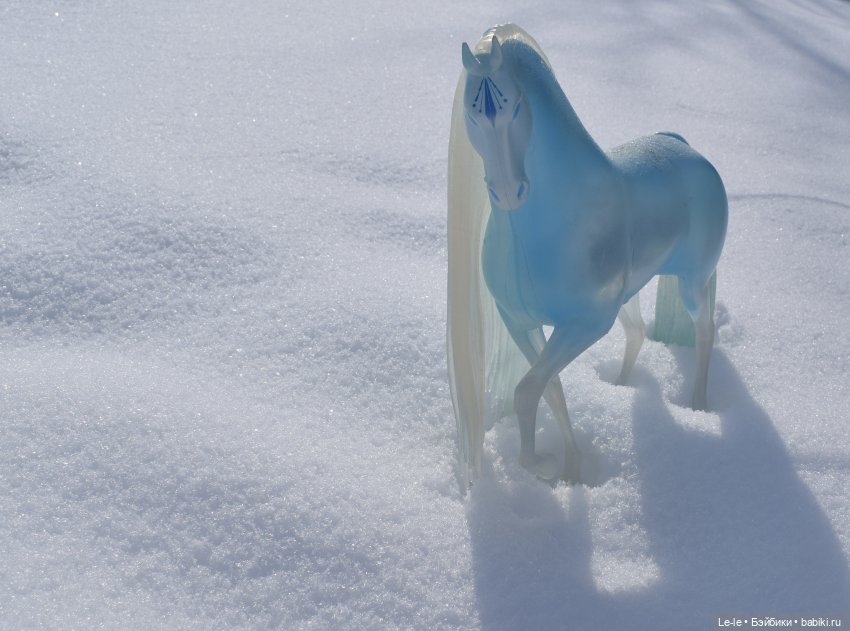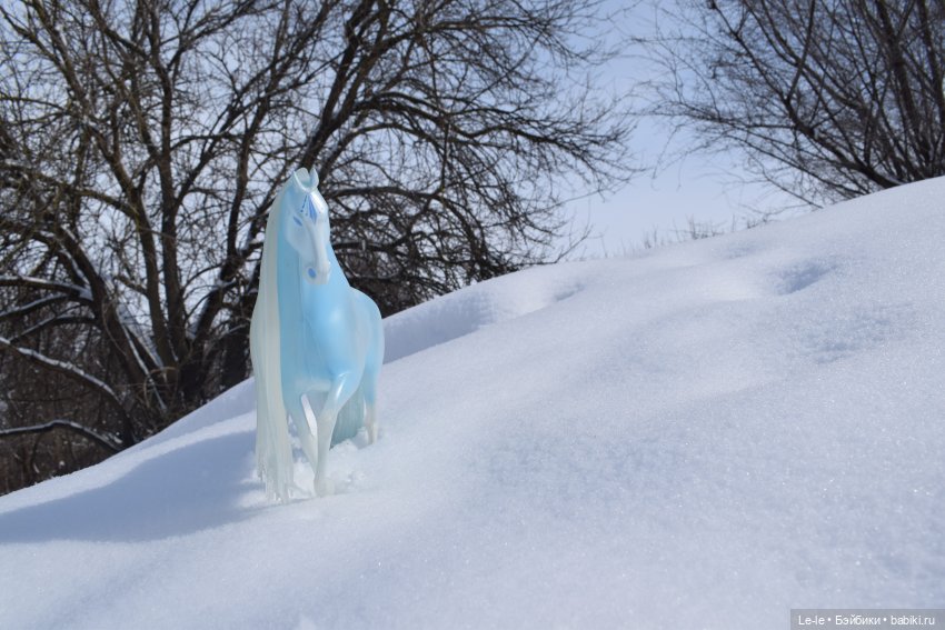 Добрый день, друзья! Недавно у моих снежных принцесс появился чудесный друг – ледяной конь Эльзы из м/ф «Холодное сердце» (только у нас он будет зваться Норд). Чудом удалось отснять утреннюю прогулку младшей из сестёр, Альбины с ним по свежевыпавшему снежку – к обеду началось потепление, и под лучами солнца снег быстро потемнел и осел.