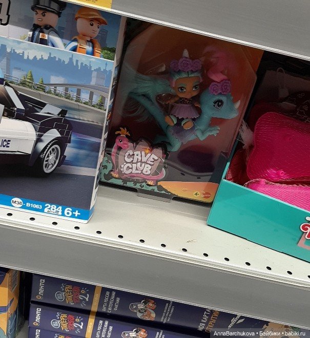 Ну и напоследок вот такая куколка попала в кадр: девочка верхом на динозаврике. И вроде к миру Барби и её аналогов и не относится. В том году, когда покупала Барби приметила девчушек на динозаврах с цветными волосами, стоящих по-соседству. Сейчас даже ценник с названием под ней не нашла.