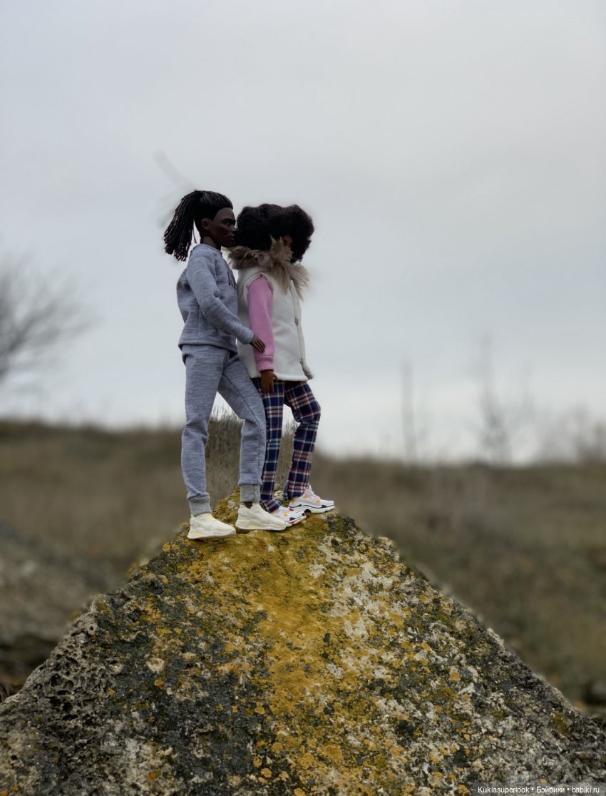 Джемперы вязала для Барби, но они отлично вписались в образы.