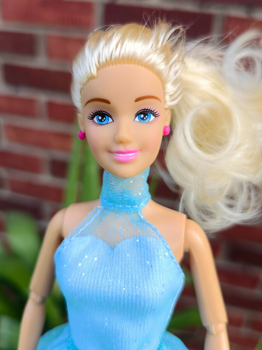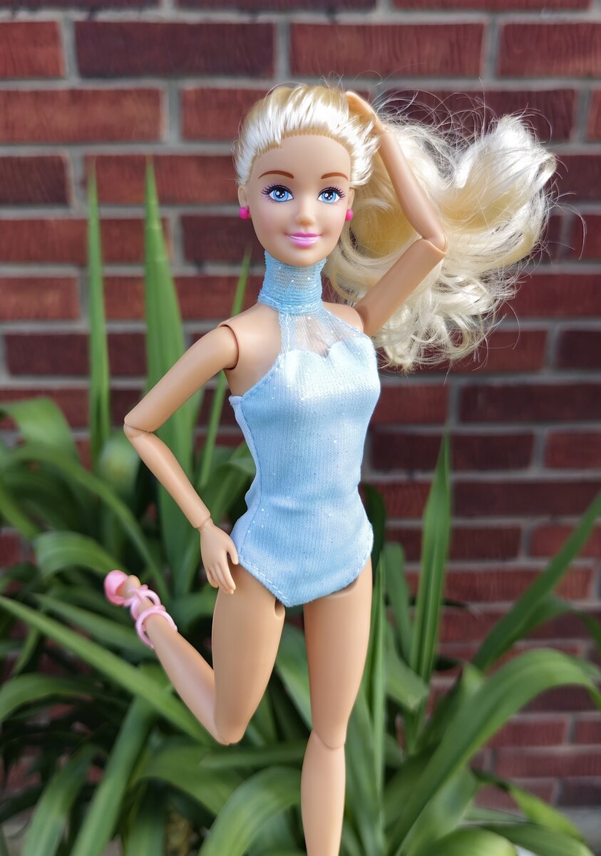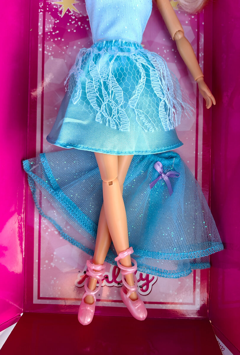 Моя кукла балерина в красивом голубом наряде. К заднику прикреплена дополнительная юбочка. На ногах куклы перламутрово-розовые пуанты.