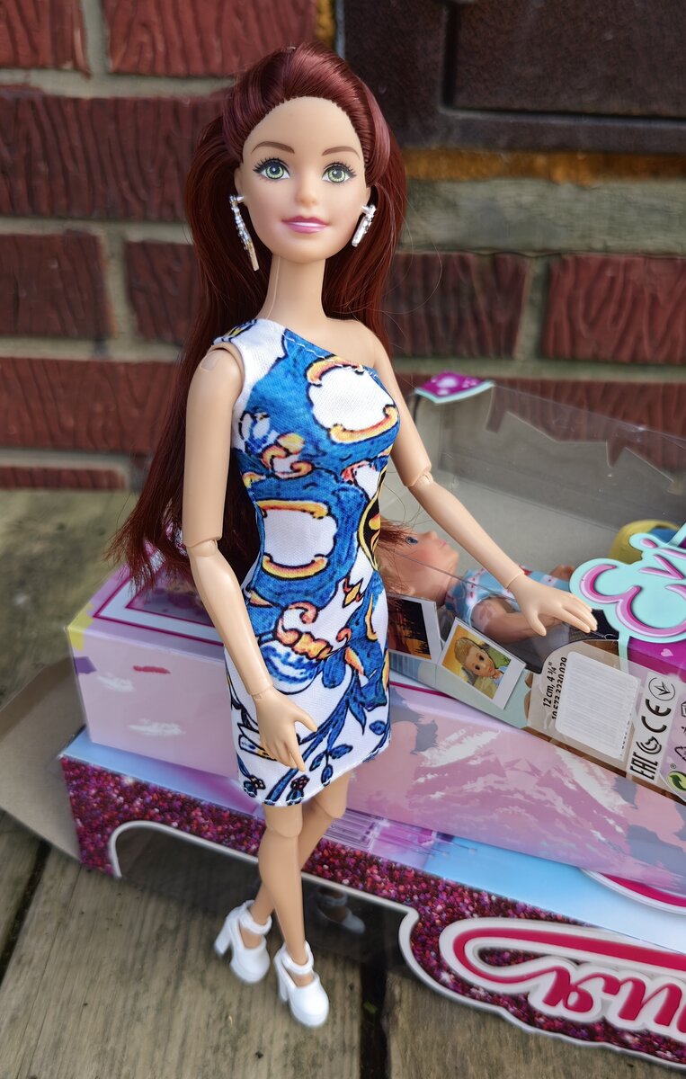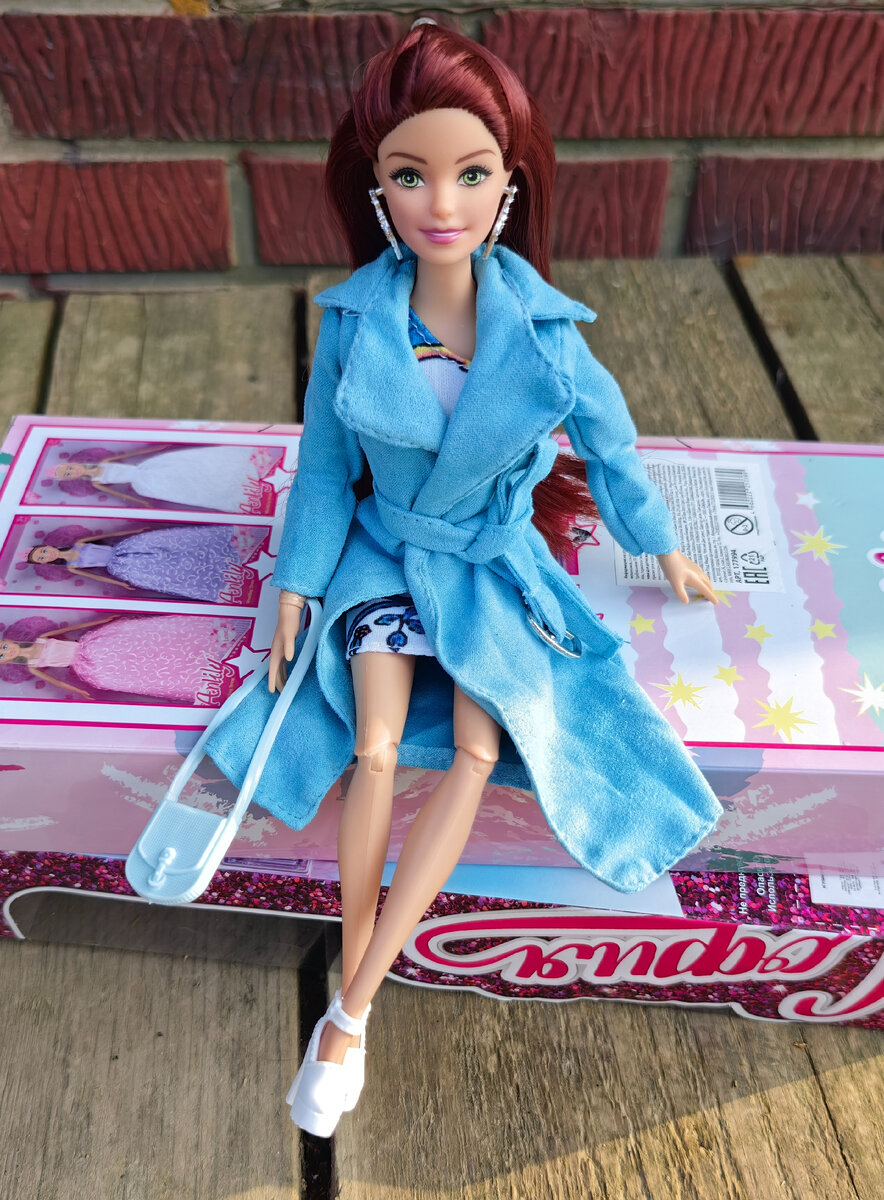 В этот раз я выбрала шатенку в красивом аутфите с голубым пальто. Это как раз один из поводов к покупке — у Софий очень красивые и хорошо сшитые наряды. Часто бывает так, что купить похожий комплект отдельно может быть дороже, чем купить куклу в коробке в этом наряде. Не высокая стоимость на маркетплейсах, хорошая одежда и вполне годное приятного тона тело это как раз то почему я покупаю Софий. Эта кукла стоила мне 611р