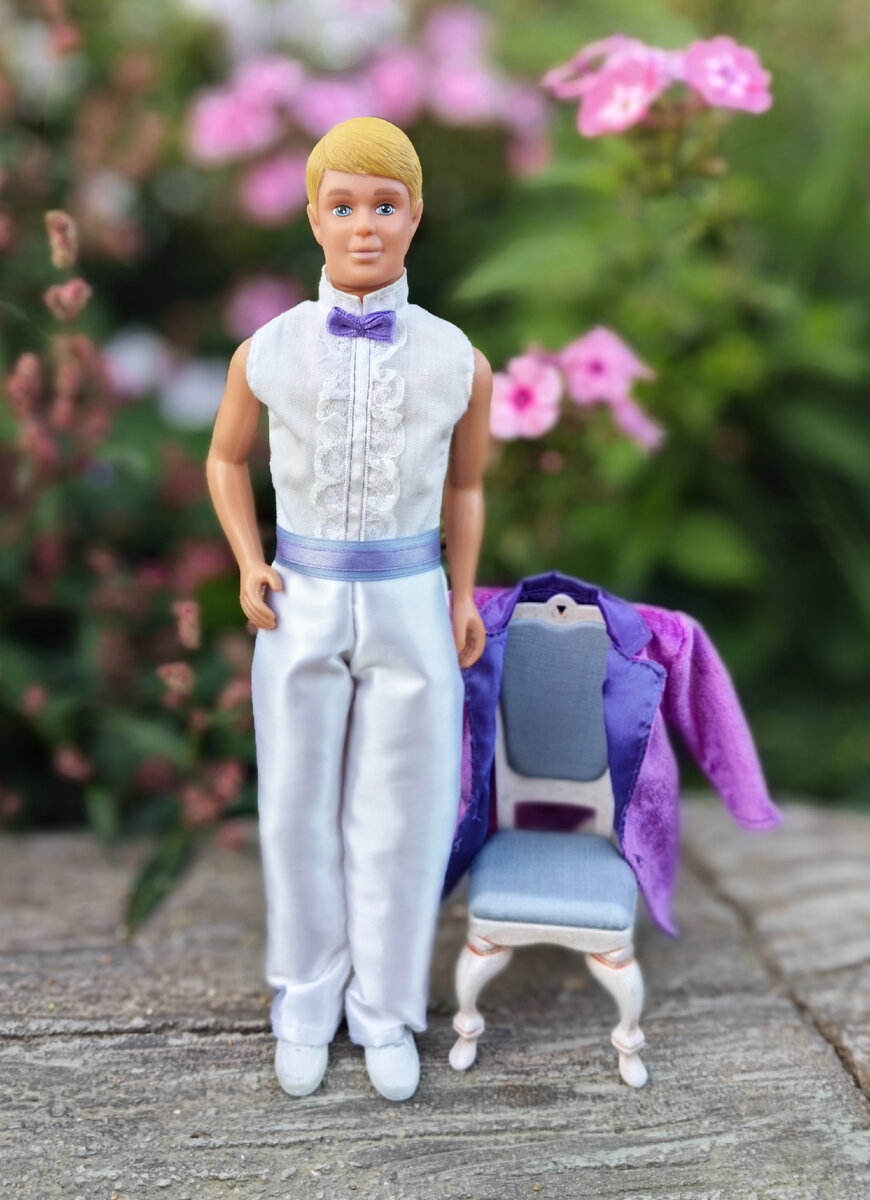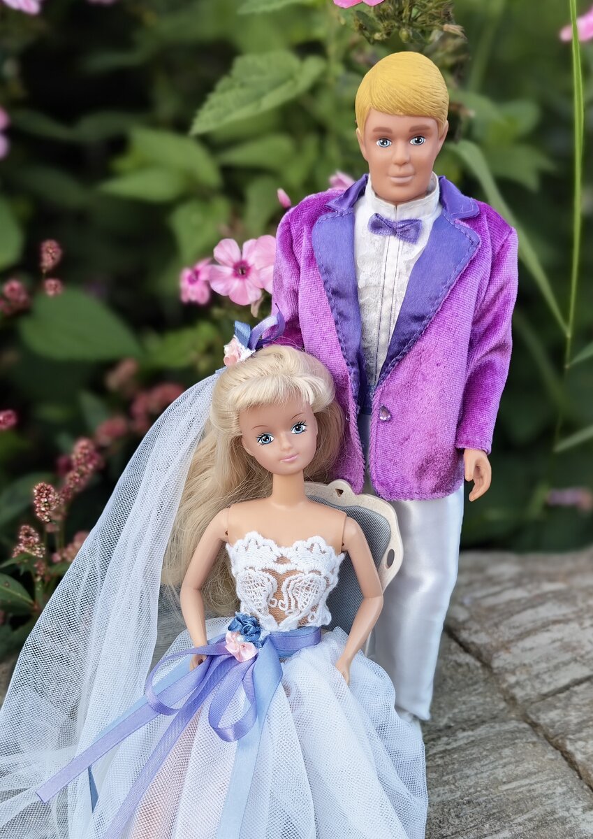 Я очень увлеклась линейкой Майков и Сьюзи. Прекрасные, хорошего качества и очень милые куклы в ретро-стиле. У меня пока собралось три пары. Одну я вам показывала в топике Счастье. А вот с остальными Майками нужно было поработать. Если первый брюнет достался в действительно очень хорошем состоянии и полном аутфите, то второй блондин был обещан в хорошем состоянии с небольшими нюансами костюма — шов разошелся сзади и все. Но на деле прибыл он с облезшей краской на голове, без бровей почти, костюм вид имел жалкий. Брюки грязные, в зацепках и восстановлению не подлежали. У пиджака отрезан кусок подклада и свисала махра от сыпучей атласной ткани. Тело куклы в действительно очень хорошем состоянии, а со всем остальным пришлось поработать. Ну и обувь подобрать подходящую) И вот такой дивный кавалер в итоге вышел после реставрационных работ. Одна из двух новых Сьюзи стала его невестой.