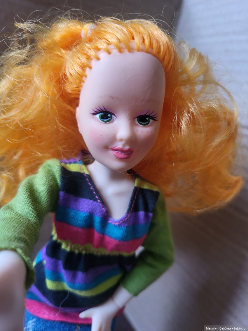 Как я и хотела- яркая и веснушчатая апельсинка, на молде с зубками. И пахнет «куклой из детства»- краской, резиной и таким специфическим пластмассовым запахом, удивительно) хотя деве уже лет пять, странно, что не выветрилась