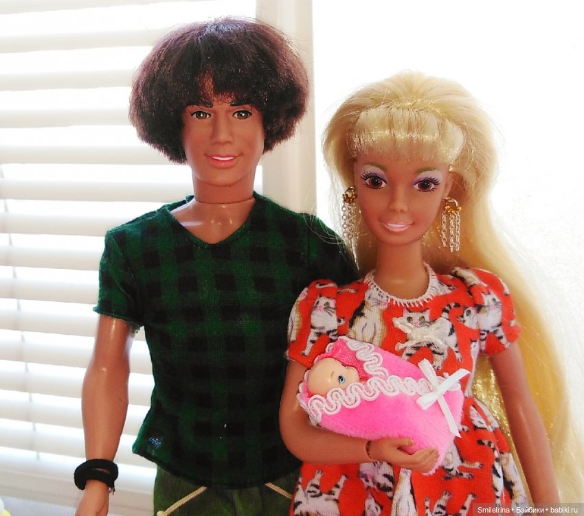 Этих кукол я даже не включала в свои списки желаний, Буши так редко появляются где-либо в продаже, а серия длинноногих красоток Hi Glam вообще прошла как-то мимо меня. И когда у меня на авито в разделе «Рекомендуемое» появилась семейка Буш, я даже не поверила своим глазам. Причем я узнала только Марка, Карина же для меня — это позитивная барышня с большими карими глазами, а эта фифа даже с фотографии смотрела недовольно, прикрыв глаза пушистыми ресничками. Посмотрев на цены, я поняла, что Марка с малышом я точно возьму, если меня раньше не опередят. И как ни странно, кроме меня, никому они не были нужны. Разговорившись с продавцом, обсудив все дефекты (как же без них), я все-таки не удержалась и спросила про Кариночку. Параллельно нашла каталоги с Каринами, и поняла что эта недовольная мадам просто более ранней версии. Решила не разлучать семью, намекнув мужу, что у меня скоро день рождения.