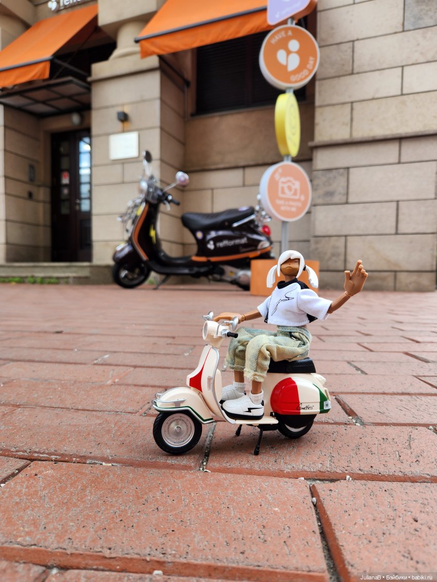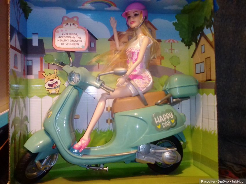 Мой «барбейский» вело-автопарк не мог обойтись без скутера (*^-^*). Но чаще всего мне попадались «двухколёсные друзья» в розово-фиолетовых цветах. А хотелось хоть как-то разнообразить цветовую гамму. И, наконец-то, «я встретила его» (*^-^*).