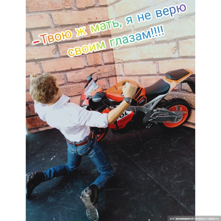 Я вот тоже недавно на вб мотоциклы шерстила, но без кукол и с упором на реалистичность, но они наверное куклам не подойдут. Ваш больше Вашей ладони?