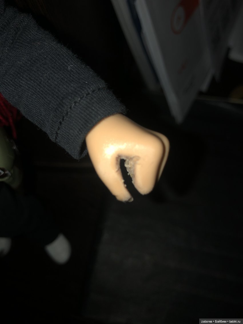 Поняла, что как-то надо его переделать, чтобы он мог что-то взять и во что-то обуться. Дело в том, что кисти рук вылиты целыми сжатыми кулаками. От первоначальной идеи о перестановке кистей от экшена отказалась, так как, имеющиеся в наличии темнее тоном и пока не придумала, как их крепить. В принципе, если есть машинка для маникюра с насадками для сверления, шлифования, то можно сделать. Но у меня нет. Поэтому я резала канцелярским ножом и шлифовала пилкой для ногтей. Стопы тоже сделала поуже под кроссовки. Пока такой:
