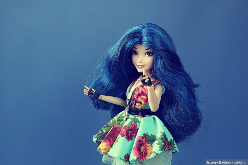 Я в год стараюсь селить не больше 5-6 кукол, это то количество, которое я успеваю обшить, отфоткать, ну и плюс со старичками взаимодействию это не мешает. А вот когда больше, то проблематично всё успеть, а ведь каждая новая кукла — это новые идеи. Но мимо неё я просто не смогла пройти. Если я вижу, что кукла «моя», то я прекрасно знаю, что не успокоюсь, пока она у меня не появится. А тут новый для меня типаж — синие волосы, необычное лицо, у меня таких вообще не было, хотя нет, есть — Иви из серии «Наследники», но я с этим форматом давно не взаимодействую, зато теперь у меня есть новая версия Иви, которой я, кстати, не успела поиграть в своё время, так как она появилась у меня как раз в переломный момент перехода от ЭАХ/МХ к экшенам, ИТ и барби.