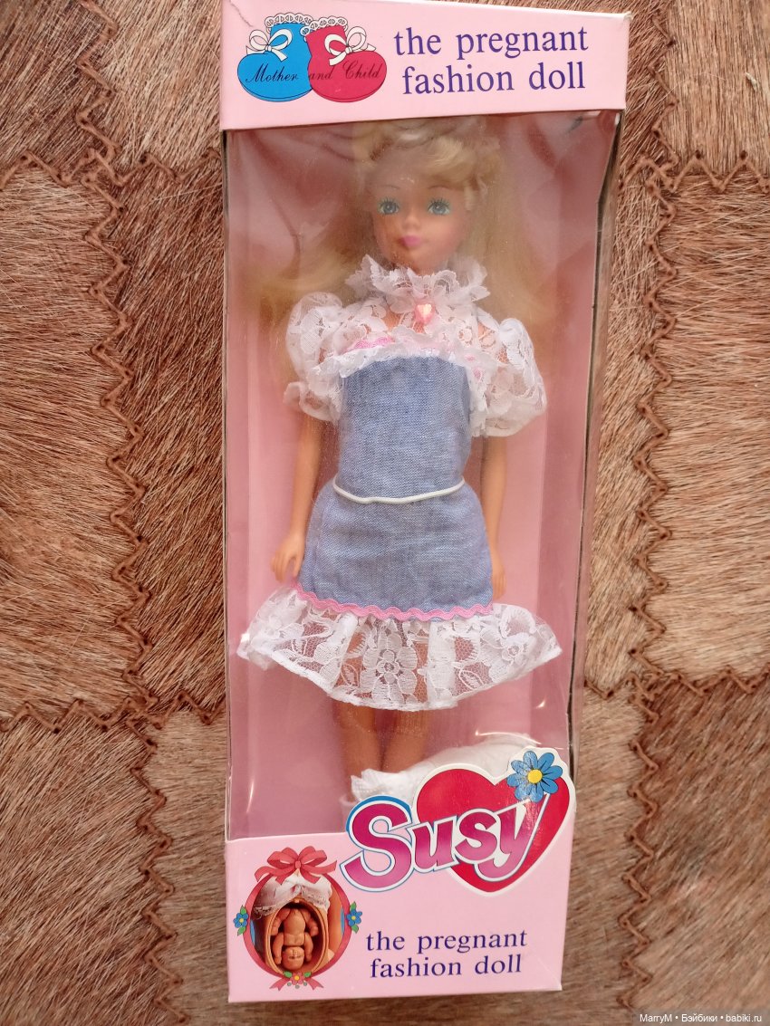 Далее в какой-то момент меня приспичило собрать беременных винтажных кукол и остальных членов семьи. Я точно не знаю Сьюзи это или Петра, поскольку они выпускались на одном молде, на продавалась она как Петра, поэтому она в этой статье. Кстати, в процессе поиска оказалось, что у меня куплены даже две беременных Петры, вспомнила что одну брала из-за аутфита, но она требует ремонта, буду ей наверное искать добрые умелые руки. Животик у нее поворачивается — одна сторона беременная, другая плоская, и в нем есть фотоэлемент — при солнечном свете если вынимать ребенка из беременного живота звучит плач ребенка.