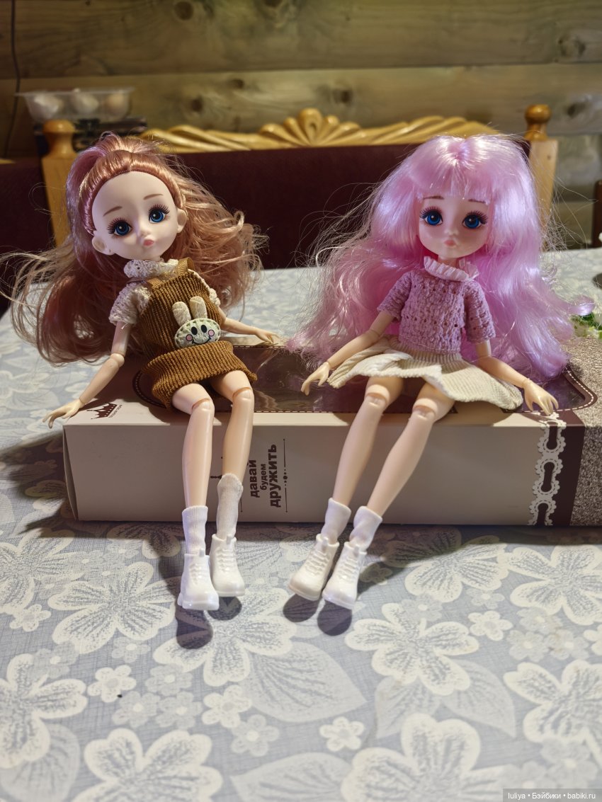 Доброго дня и хорошего настроения всем заглянувшим! Прошлой весной, забежав за продуктами в «Чижик», я наткнулась глазами на задумчивый взгляд из кукольной коробки… А так как цена была просто смешная, кукла уехала домой вместе с двумя банками консервированной фасоли))) Дома я коробку счастливо распотрошила, осталась весьма довольна содержимым и на следующий день.прикупила кукле сестричку. Ну не селятся у меня куклы поодиночке, у каждой либо кавалер, либо подружка) Размер как у барби — 1/6, но пропорции более «анимешные». Такие вот забавные, слегка меланхоличные девчушки. Почему-то у меня они ассоциируются с француженками, поэтому назвала их Николь (розововолосая) и Дениза (рыженькая).