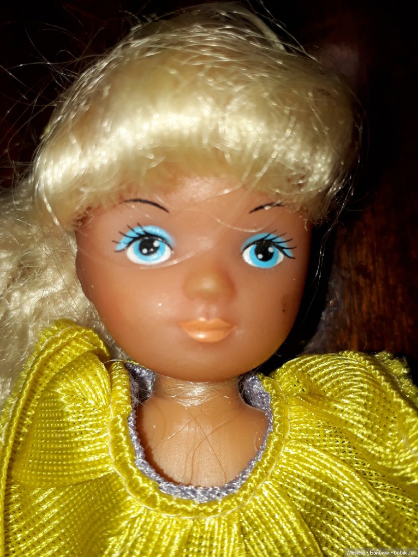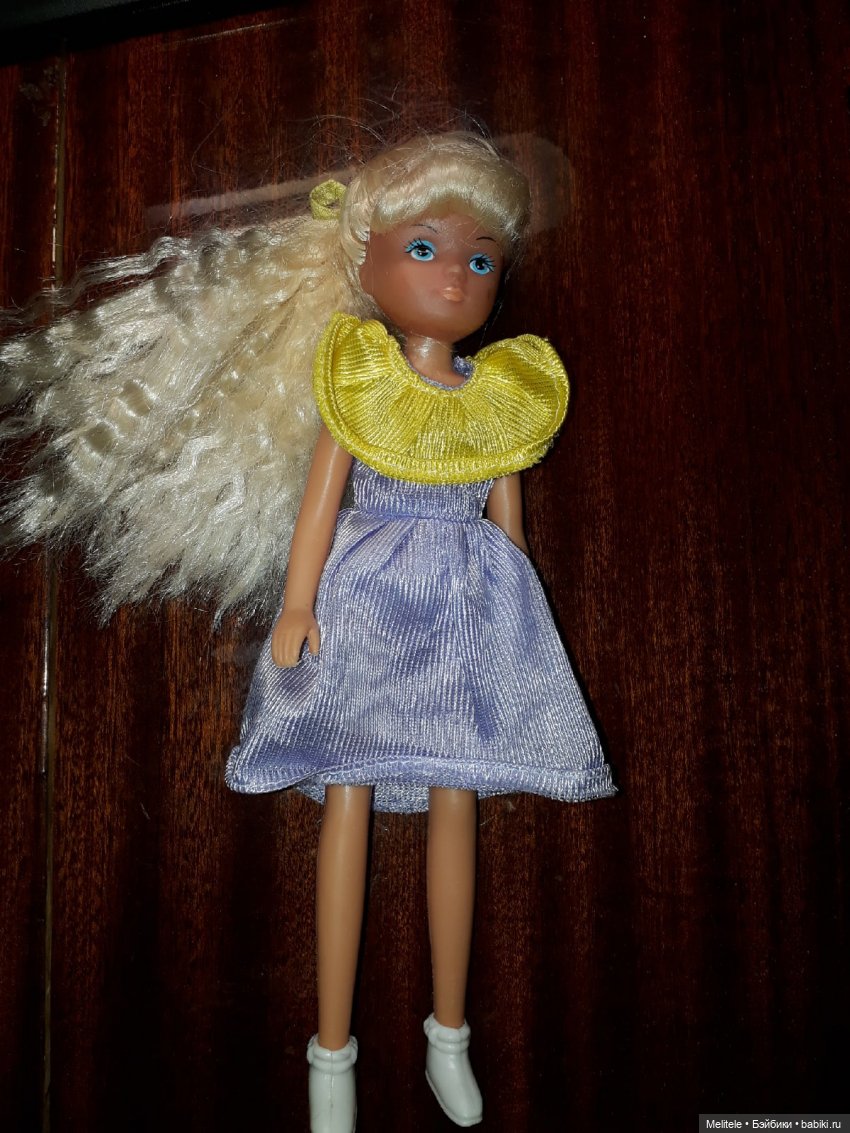 А с этой куклой была интересная история — увидела ее на барахолке в Новоподрезково, продавалась она, и рядом лежало пышное платье, как я думаю от нее. И пока я крутила в руках куклу, мимо пробегала женщина, схватила платье и купила его. Мне осталась одна кукла. Судя по фотографиям из интернета — она Джеми (Jamie).