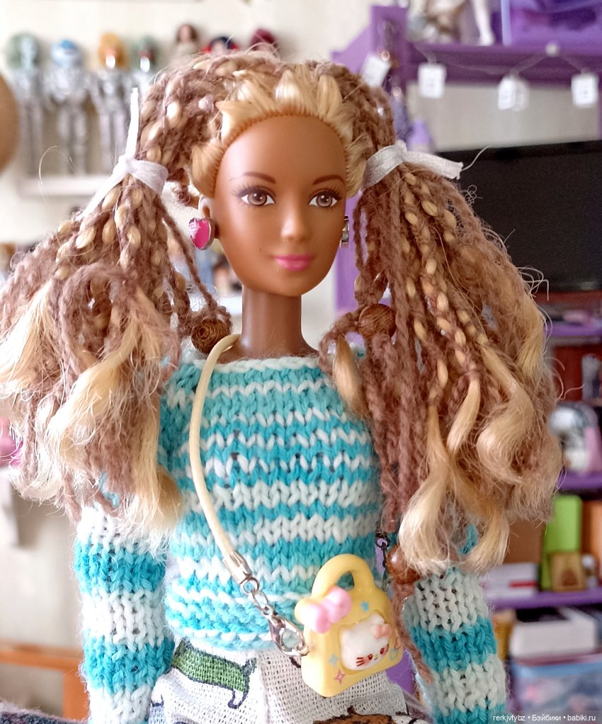 У меня живëт смуглая блондинка. Но та, которая с кудряшками. Волосы были так себе качества, пришлось придумывать прическу.