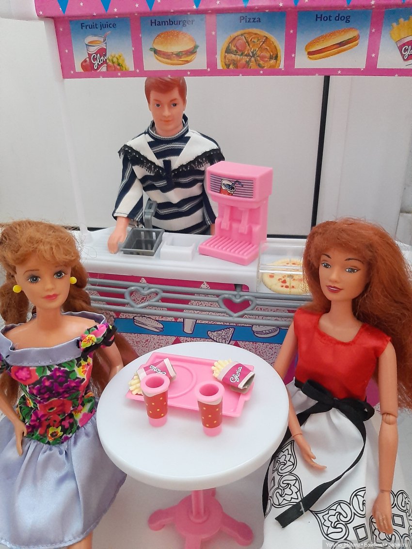 У меня в свое время было три их набора с разными комнатами, но в этот раз я выбрала ресторан, чтобы там могли расположиться сразу несколько винтажных барбиобразных. Изначально я надеялась, что все это великолепие можно будет поставить на полку в качестве декорации, но, похоже, для этого мне пришлось бы менять шкаф.