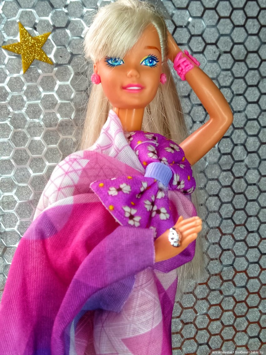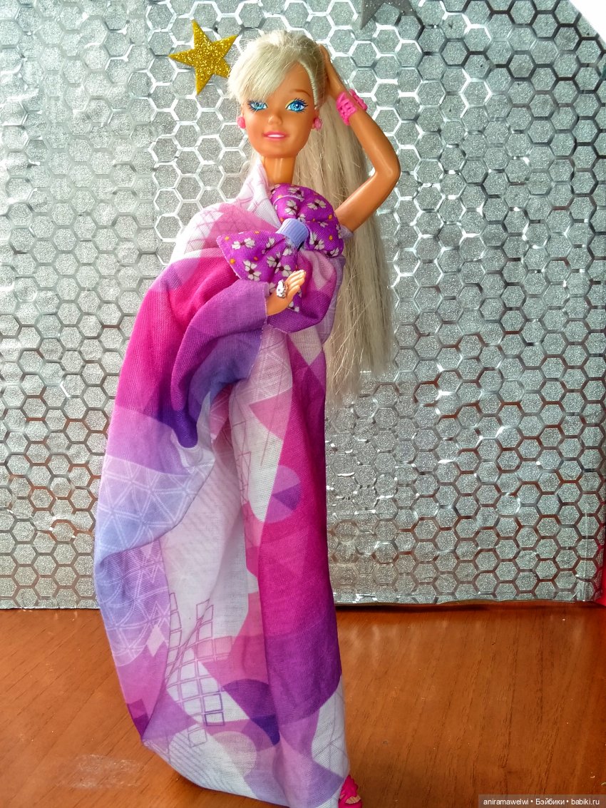 — Сегодня нам понадобится небольшой кусочек интересной ткани, ленточки, булавочки, резиночки, и вдохновение. Будем ваять себе наряд!