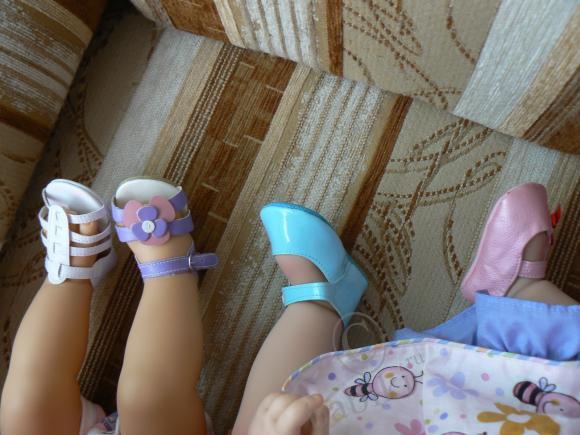 Адоркины сандалики для Little Sunshine оказались велики, зато 20-дюймовой Адорке-Пчёлке всё впору, даже Анабелькины туфельки и ботиночки Шу-Шу. Илоне не налезло ничего, только голубенькие Адоровские туфельки внатяг.