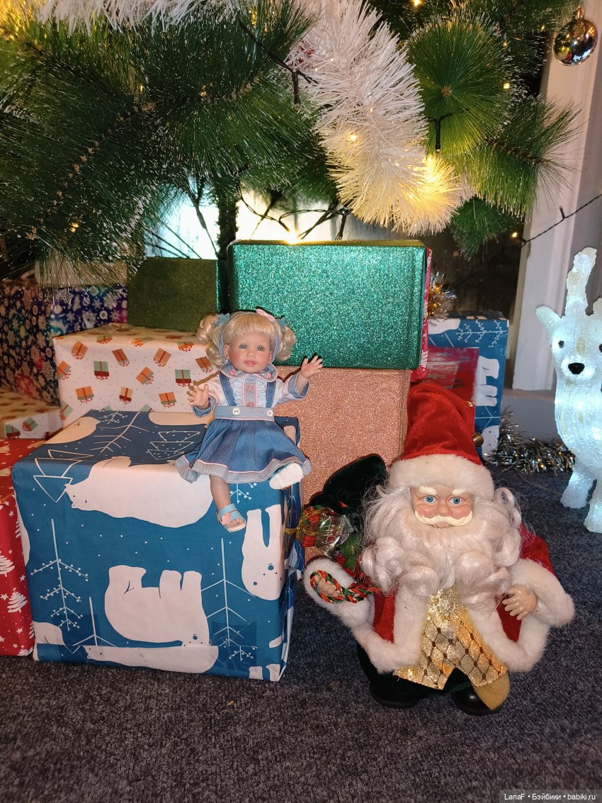 Сидит с Дедом Морозом, вся в подарках и сама как подарок)