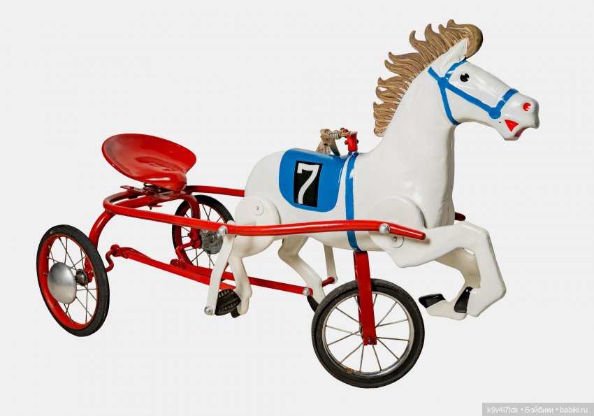 Вот такой быль конь. (картинка из интернета) Мне повезло, что жили мы в доме, где был грузовой лифт. Конь был довольно тяжёлый, если бы своими силами выносить на улицу. Сиденье было на рессорах, подпружинивало. Классно было кататься на нём :)