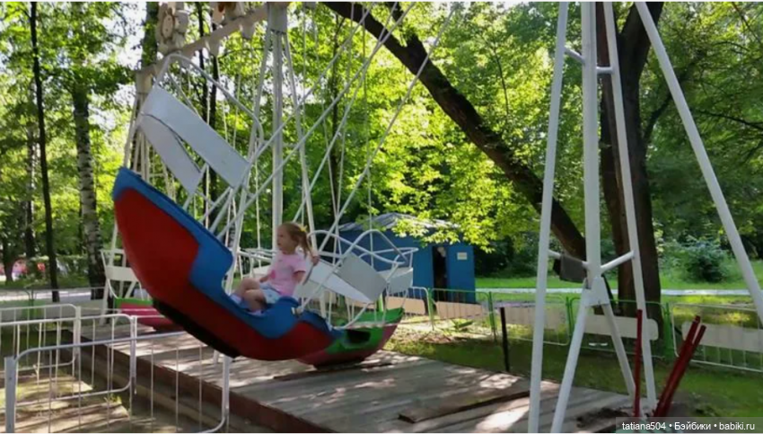 А фото с интернета с малышкой, по всей видимости более позднее, когда аттракцион уже не работал, правда моя версия. Возможно кто то из взрослых раскачал качели не высоко, или это просто постановочное фото… остается про него гадать.