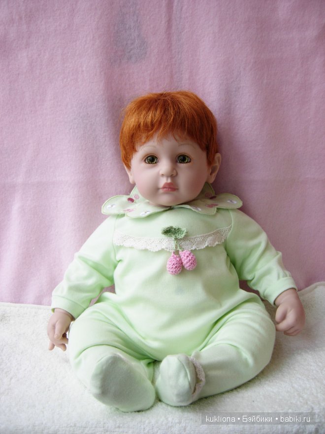 Мне кажется эти личики, что у вашей куколки, что у моей — «губки бантиком», дающие вид серьезности на детском личике, что кукла становится универсальной, может быть, как девочкой, так и мальчиком.