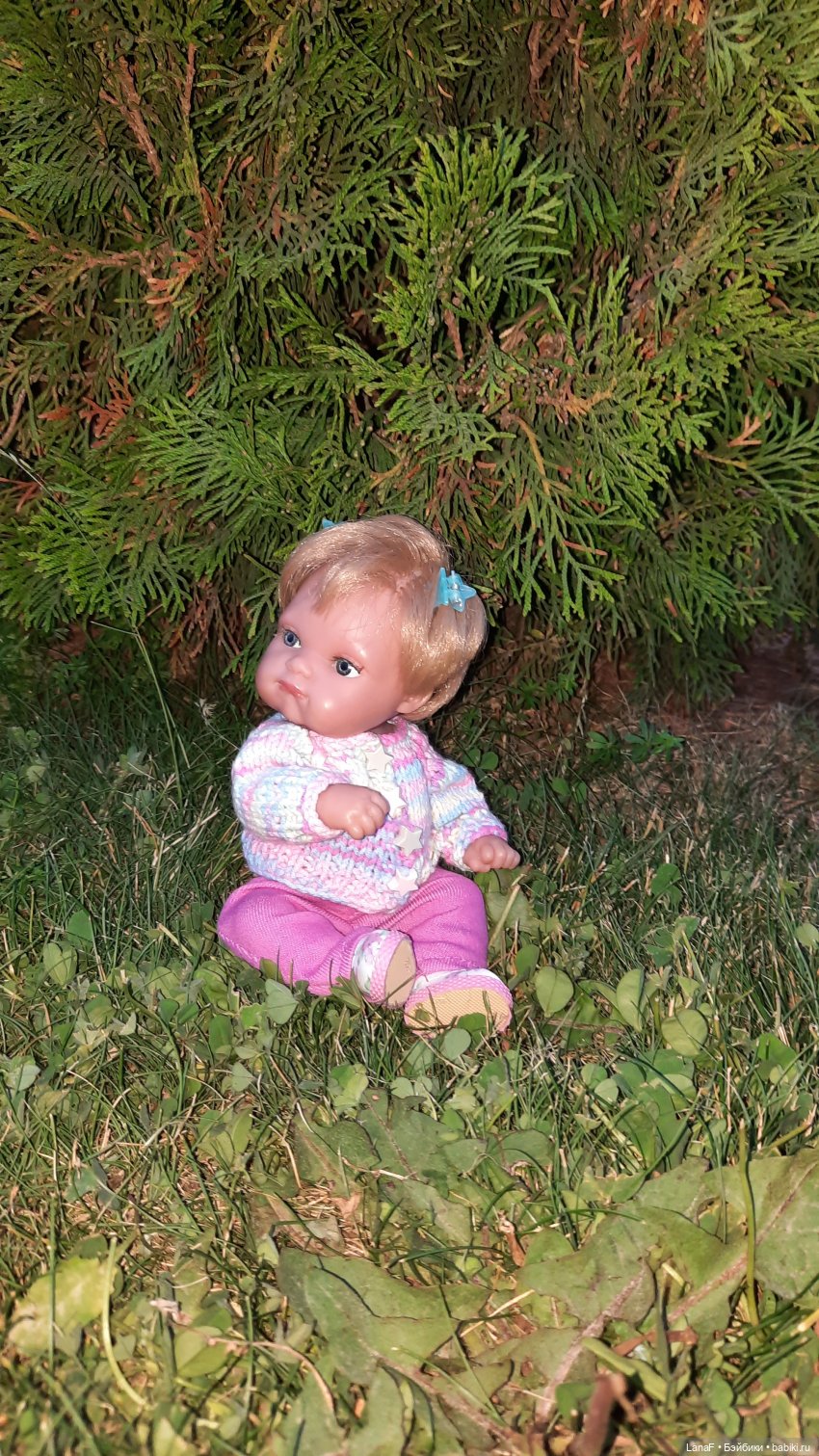 Для меня минус (не критичный) у этой девчушки, отсутствие бровей нарисованных. У настоящих деток бровки проявляются через пару месяцев от рождения. А если сравнивать Пепиту с настоящими детьми, то Пепите где-то месяцев 6.