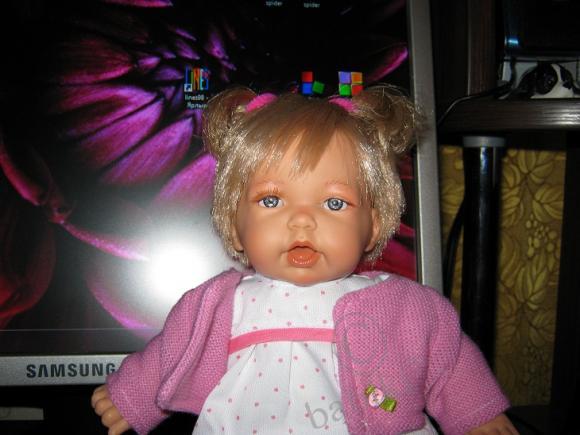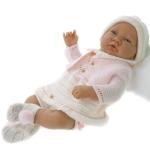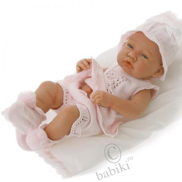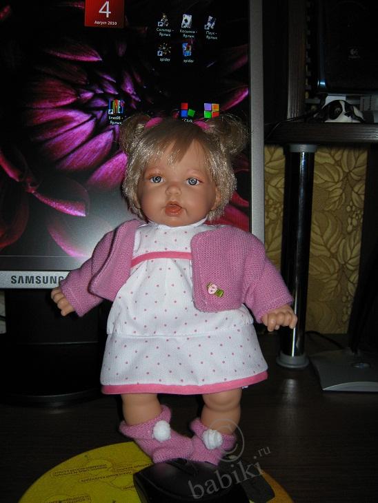 Малышка Розочка! Милая нежная девочка. Ростом всего 26см, с мягко-набивным телом. Куколка Antonio Juan является интерактивной: при нажатии на животик она по-русски говорит «мама» и «папа», а также громко и весело смеётся. Но я извлекла эту маленькую коробочку из тела малышки. Мне так больше нравится.