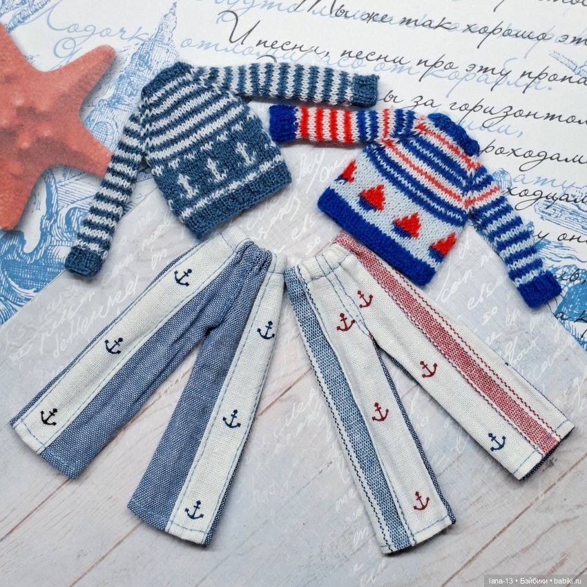 А мы тоже начали подготовку к лету. Вот такие комплекты пошились-связались — морские!