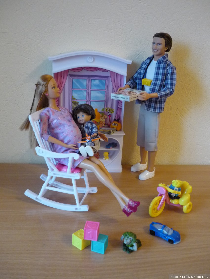 Привет, девченки! Сегодня хочу представить вам Мидж, лучшую подругу Барби. Ее производство началось в 1963 году. В 1991 году кукла вышла замуж. Спустя некоторое время производители решили сделать ее беременной. Беременная Мидж носит на руке обручальное кольцо. В комплекте с ней идет малыш, кроватка, стол для пеленания, ванночка, детские игрушки и набор для новорожденного. Мидж – первая и последняя беременная кукла в линейке Mattel. В 2002 году она была полностью снята с производства. Ее релиз наделал много шума среди общественности. Некоторые потребители утверждали, что кукла была неподходящей для детей и способствовала учащению беременности среди подростков. Еще одним поводом для полемики послужило то, что девушка изначально не имела обручального кольца и продавалась отдельно от Алана. Куклу сняли с производства и изьяли из продажи во многих магазинах. Понятно, что для коллекционеров рейтинг куклы взлетел))) Именно эта Мидж нравится мне больше остальных — не знаю уж почему, наверное, ее так украшает беременное пузико. Очень нежная и добрая девушка в ожидании чуда, встречайте!