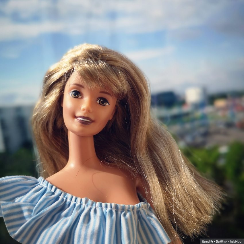 И сама очень люблю джинсовую одежду! Поэтому тоже не могла устоять перед такой Барби, тем более русоволосой и кареглазой.)) Обожаю ее нежное личико без макияжа и русые волосы!