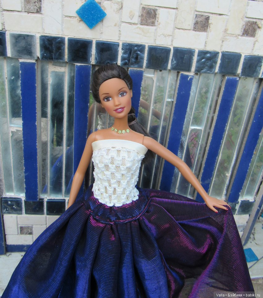 Немного о процессе и потом наверное большие фотографии (скажите, если, что не так с размером). Платье было сшито пару дней назад, но хотелось к нему еще бусы. Позавчера нанизывала их до ночи на резиночку. Потом цветочек из бисера… Хотела все поснимать вчера, но дождь лил весь день и было очень пасмурно. Сегодня вроде и солнечно, но руки мои из… На телефон совсем все плохо, взялась за фотоаппарат. Получила 100500 фоток, в три захода вроде бы укротила этот фотоаппарат с ручным режимом! Сложность еще в том, что у меня нет подставки для Барби, нормального фона, пригодного пола и туфлей для этого платья. А еще волосы магнитились от каждого движения, бусы съезжали, глаза бликовали, фото получались не резкими и Олеся норовила упасть после каждого снимка… Я была в отчаянии.Но потом вроде все сложилось и получилось то, что получилось. И как итог всего шесть фоток! Оказывается, я еще и позировать не умею ни сама, ни куклой)) Олеся и не модель, чтобы это уметь. Она сидела на еже и делала странные пасы руками, но в общем ей понравилось. Приглашаем к просмотру и ждем других конкурсанток, будем учиться принимать красивые позы.
