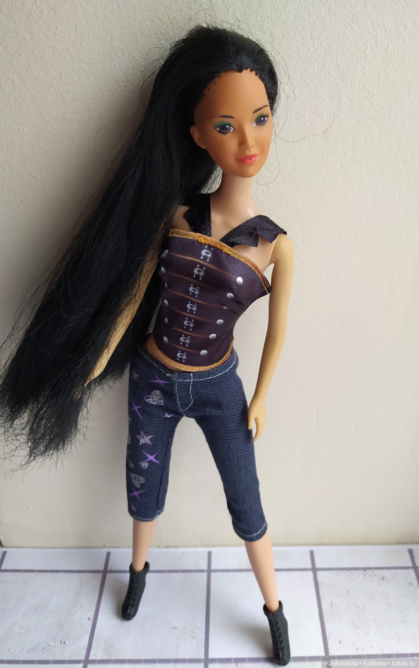 Добрый вечер! Я сегодня решилась и переодела свою Барби перуанку. Ну никак не вытерпела. А ведь думала так в коллекционных и оставить. Посмотрите на нас. Одежды своей нет. Пришлось позаимствовать у Вики. Прежде всего это охапка шикарных волос. Приятное тело. Красивые ножки. Удивила её стойкость. Отлично стоит без поддержки на каблуках.
