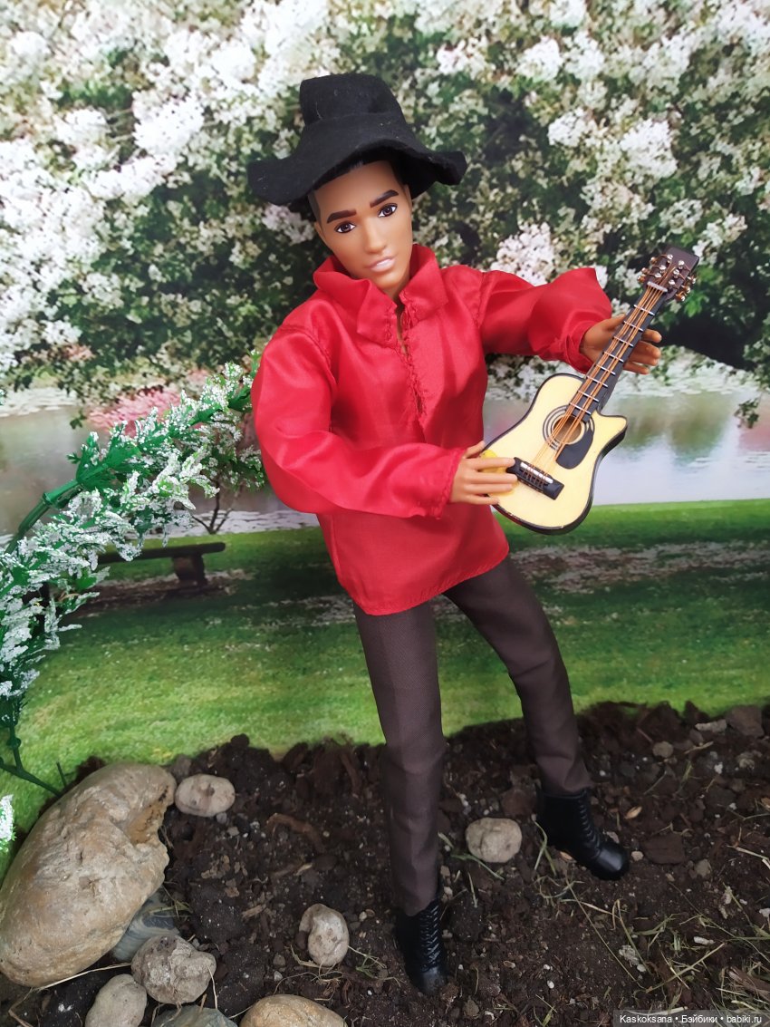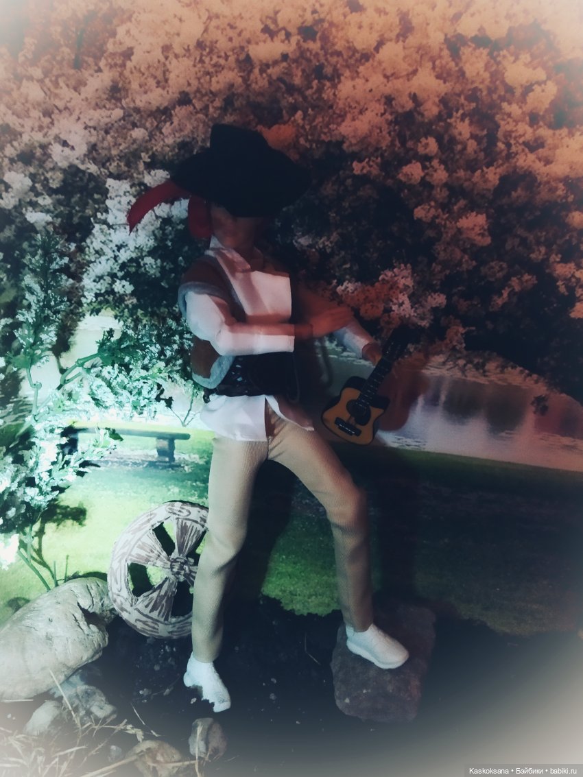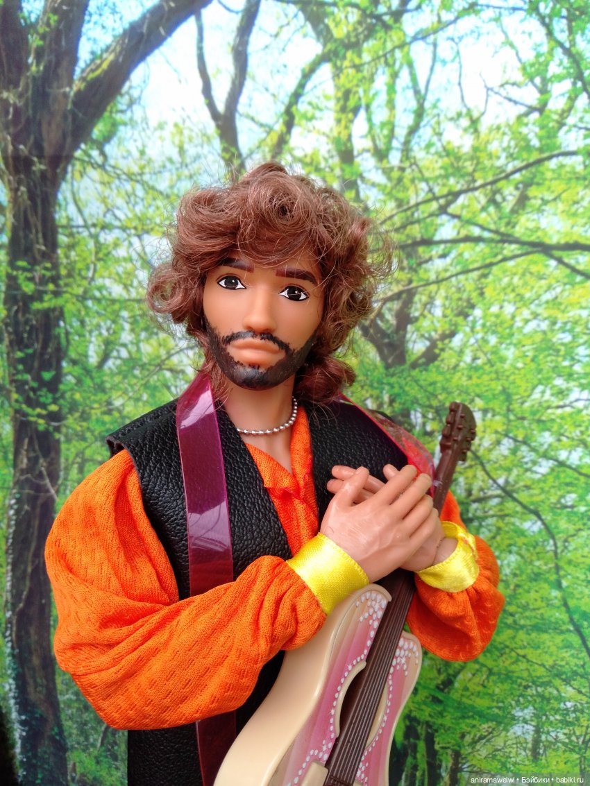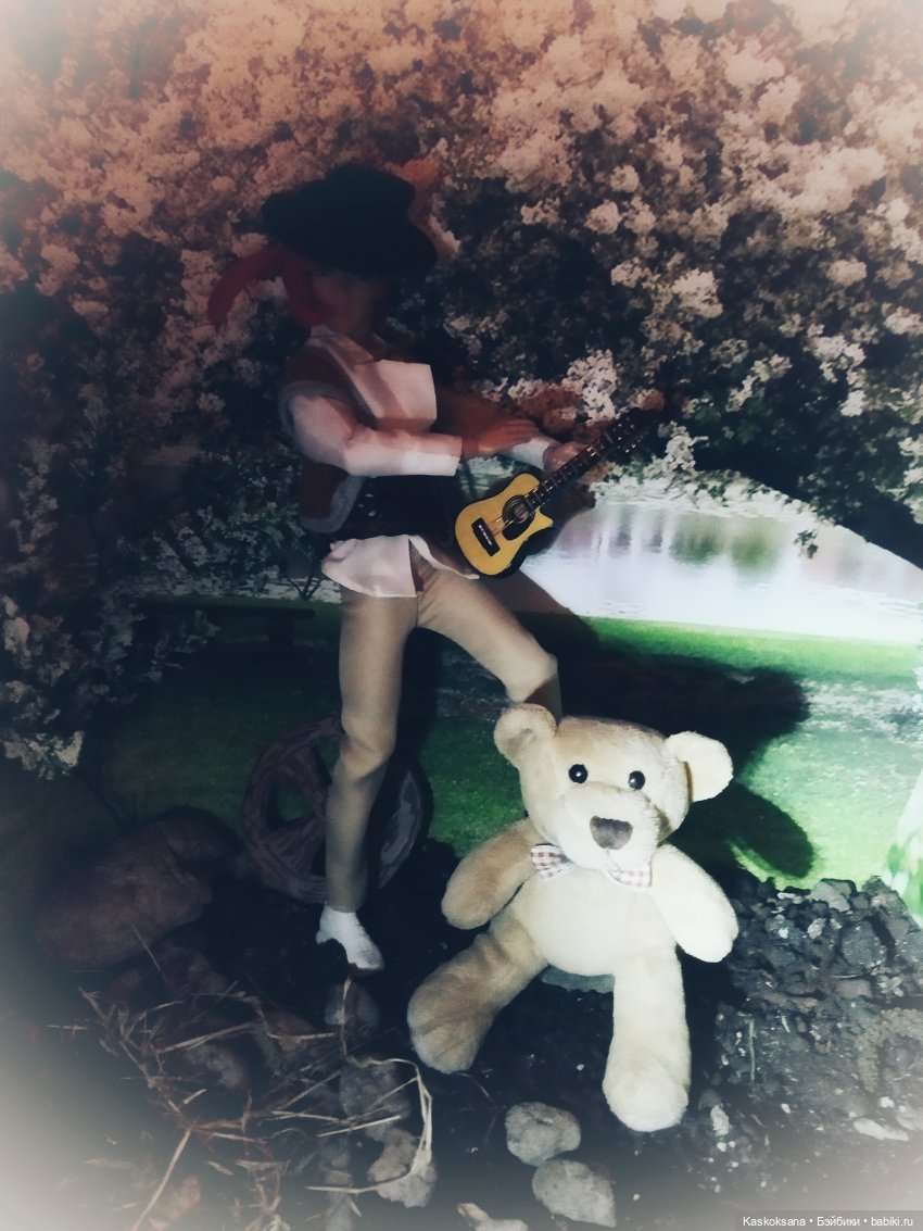 А в рукаx ее гитара,