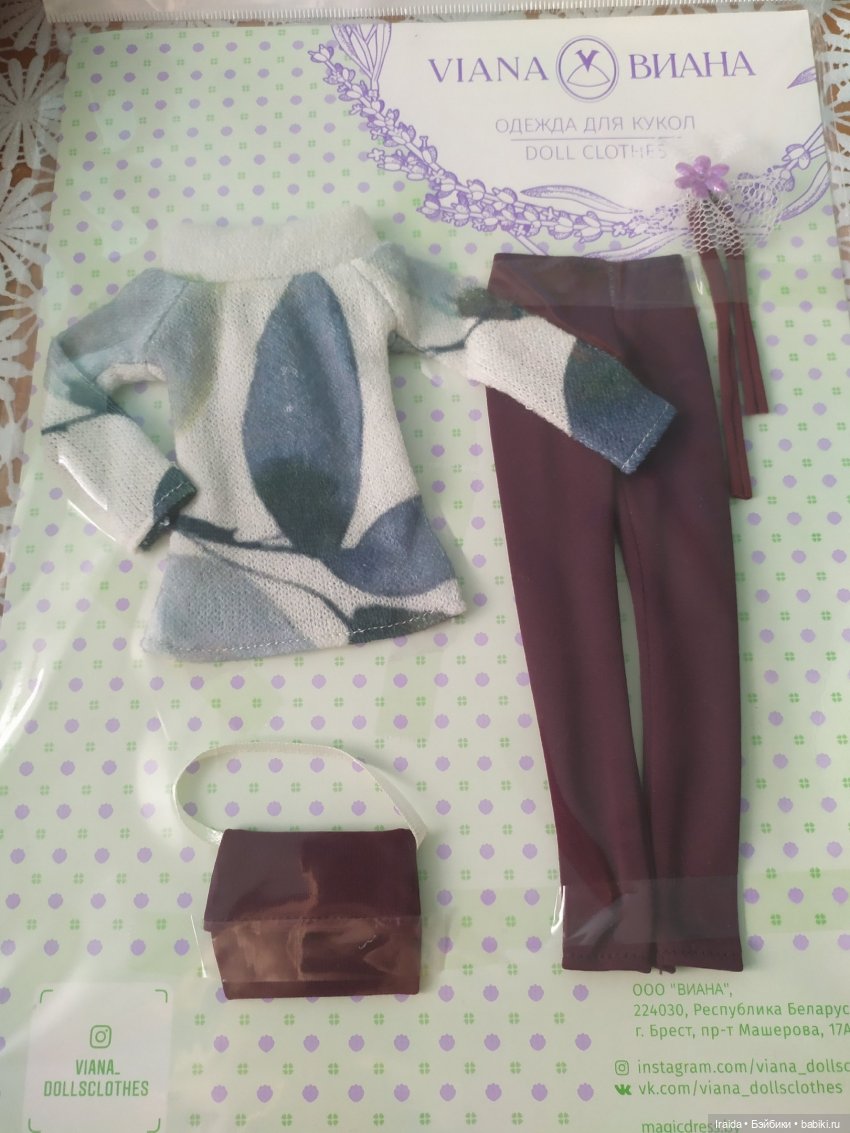 Бывает у Вас такое, что заказываете какую-то мелочь на ozon и не хватает до бесплатной доставки. У меня бывает, и добиваю я, как правило, чем-то кукольным. Именно так я познакомилась с аутами от Вианы. В последний раз мне визуально понравилось несколько вещей. Стала искать информацию. Оказалось, что марка эта белорусская, у них есть свой сайт, с которого можно заказать вещи в полтора раза дешевле, чем на озоне. А с определенной суммы (зависит от города) у них еще и бесплатная доставка. И тут жаба (не без помощи хомяка) бессовестно задушила сама себя. Теперь у меня горка аутфитов этой фирмы.