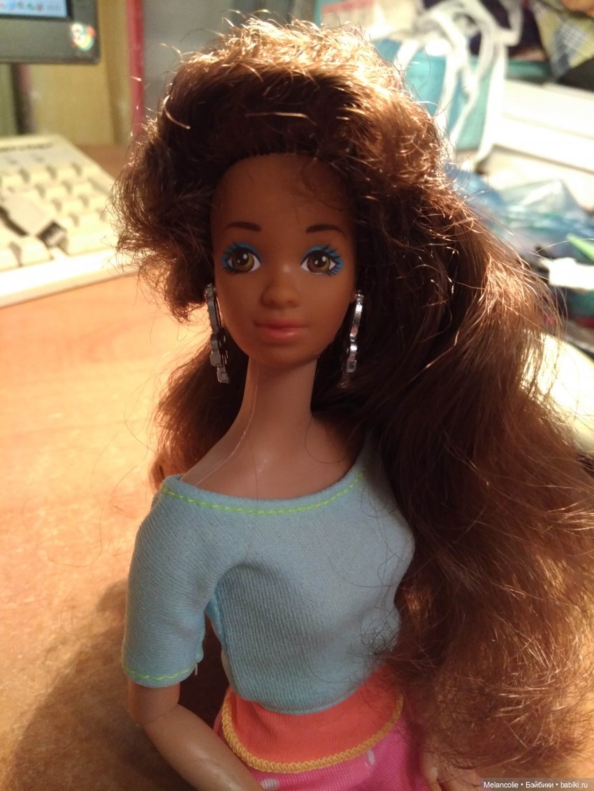 Но что интересно, насколько сильно у них мейк менялся в зависимости от годов выпуска… 82е все такие нежные-нежные мне кажутся. А моя настоящая барби из детства (ну… отрочества, точнее уж) была «Dress'N Fun Barbie», 1993 что ли года. Она и её ровесницы уже более яркие все, мейк ярче.
