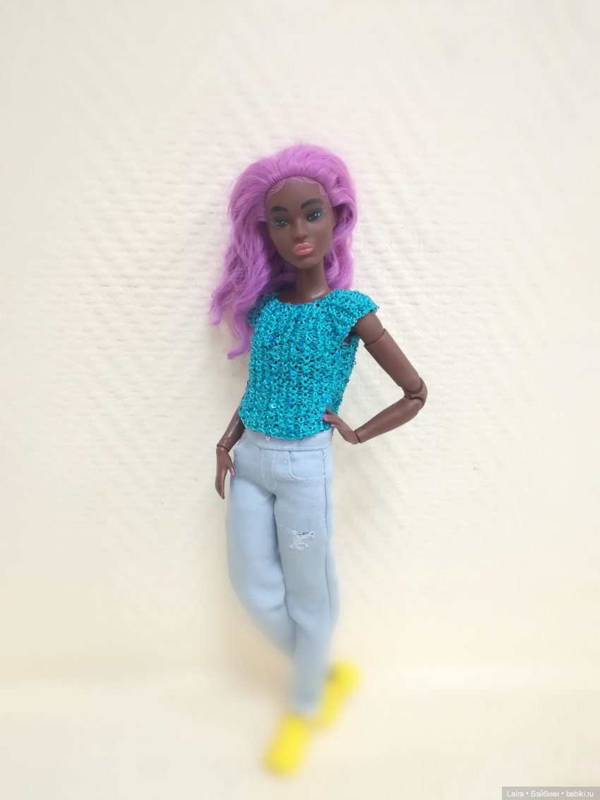 Доброго времени суток! Недавно я показывала свою новенькую барышню. Это моя первая темнокожая Барби и первая на теле петит. Родной макияж меня смущал, губы были на 1 плане. Я решила стереть губы и перепрошить девушку. Прошивала волосами парика от гендерно нейтральной куклы. Вот что у меня вышло