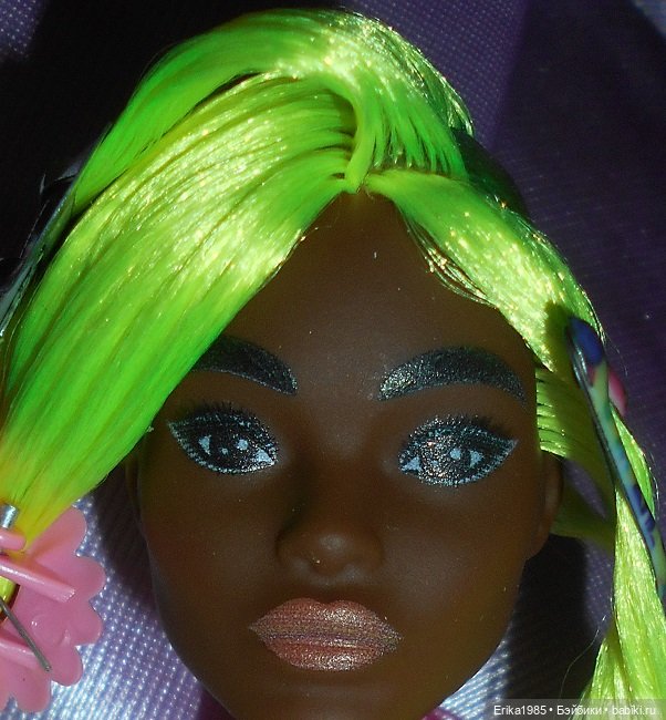 Пожалуй, это одна из немногих кукол Маттел, которой или оставлять заводскую прическу, или перепрошивать. Родные розовые волосы — без слез не взглянешь, качество ужасное, и эти замочаленые концы… Я своей куклени гульки распустила, долго и разными способами пыталась создать нормальную прическу, в итоге два варианта — хвост и плетенка.