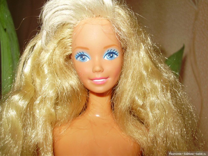 Но когда я уже увлеклась куклами, но еще понятия не имела о разных выпусках Барби и просто искала свою «Ту Самую Барби», самой первой мне попалась именно кукла 1989-го года, Wet' n' Wild Barbie. И Вы верно заметили, куклы этого года сочетают в себе нежность 80-х и яркость 90-х. Вот моя девушка, но она пока что еще без аутфита: