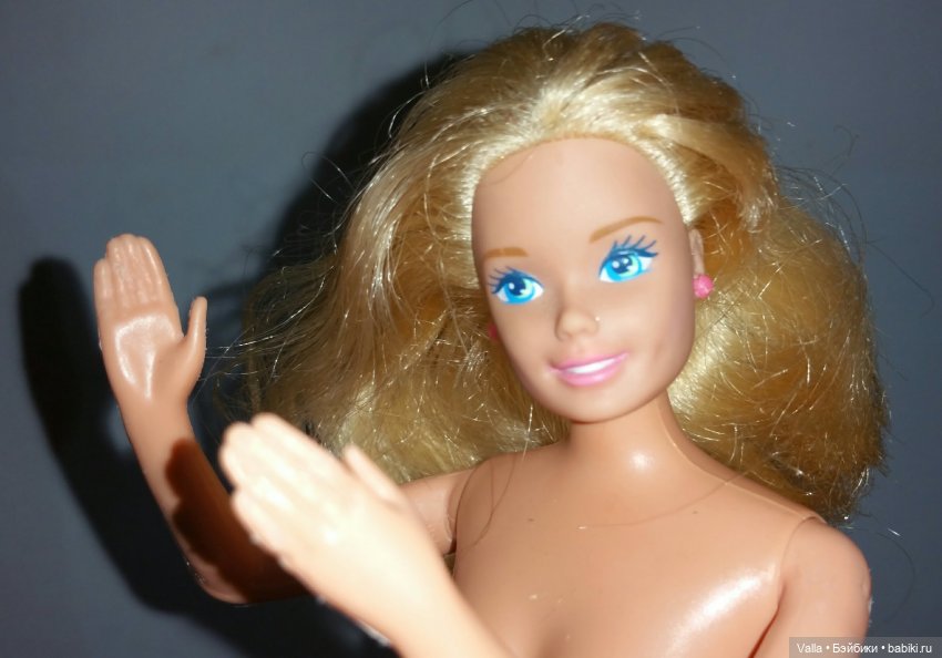 Про задвиг я отлично понимаю, у меня был такой же. Зря ты говоришь, что ими ничего нельзя сделать: в отличии от прямых, которые только поднимались и опускались, согнутые ещё разводились в стороны. Можно было и поднос дать в руки, и сумочку на локоть повесить, и расческу, и помахать в знак приветствия, и в пару для танцев с Кеном поставить! И обнять ими проще)