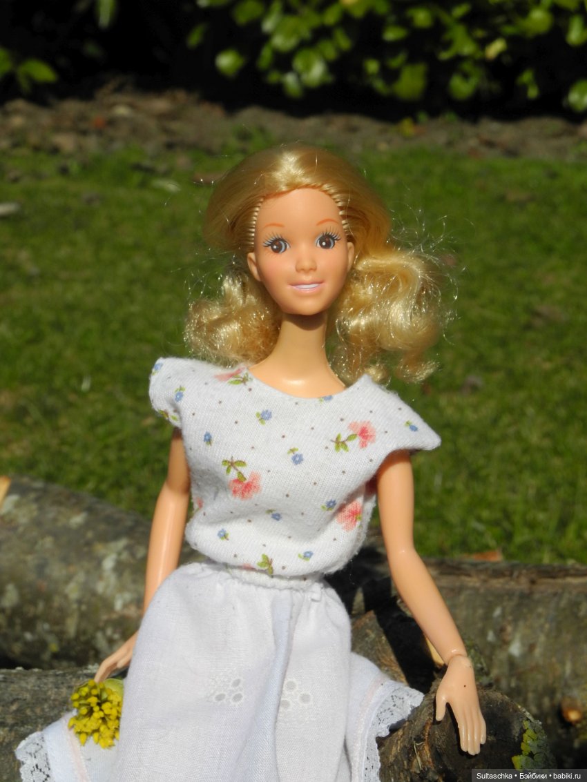 Хочу познакомить вас с ещё одной своей капризулей. Знакомство наше с ней было немного странным. Началось оно в одном курортном городе, так что, в некотором роде, это курортный роман. Увидела я девочку в детском мире (что ещё делать в курортном городе с двухсот летней историей? Конечно ехать на окраину в торговый центр, гулять по детскому миру. М-да), девочка мне очень понравилась, но цена у неё в тот день была не очень приятная, поэтому я уехала оттуда с другой девочкой Barbie bmr первой волны, той которая с косичками, у нее цена была приятнее да и в моем городе их как раз на тот момент не было. Но забыть Апельсинку (так я про себя обозвала девочку) не могла. В моем городе эта девочка не продавалась, поэтому пришлось воспользоваться услугами интернет магазинов.