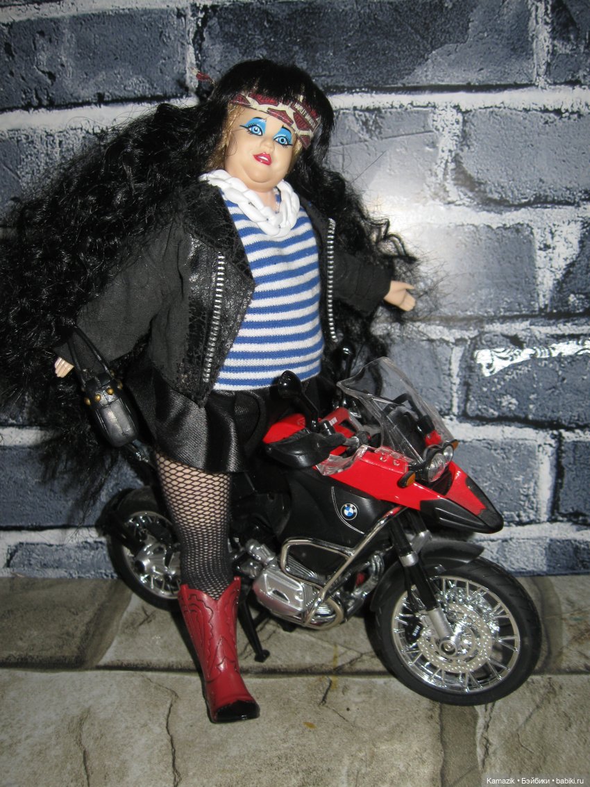 А я на свою натянула типа лосины, сшитые для обычной Барби. Просто ткань сильно тянущаяся. И в них она мило так смотрится.