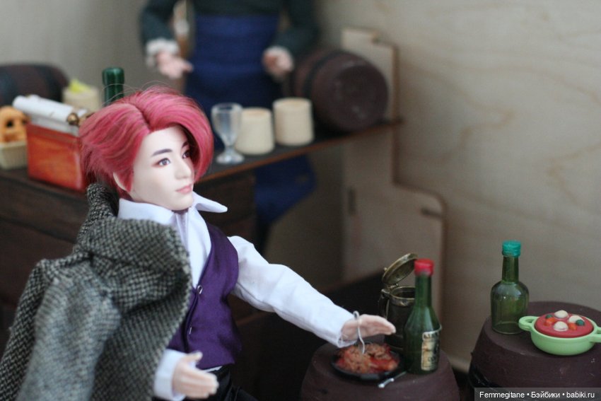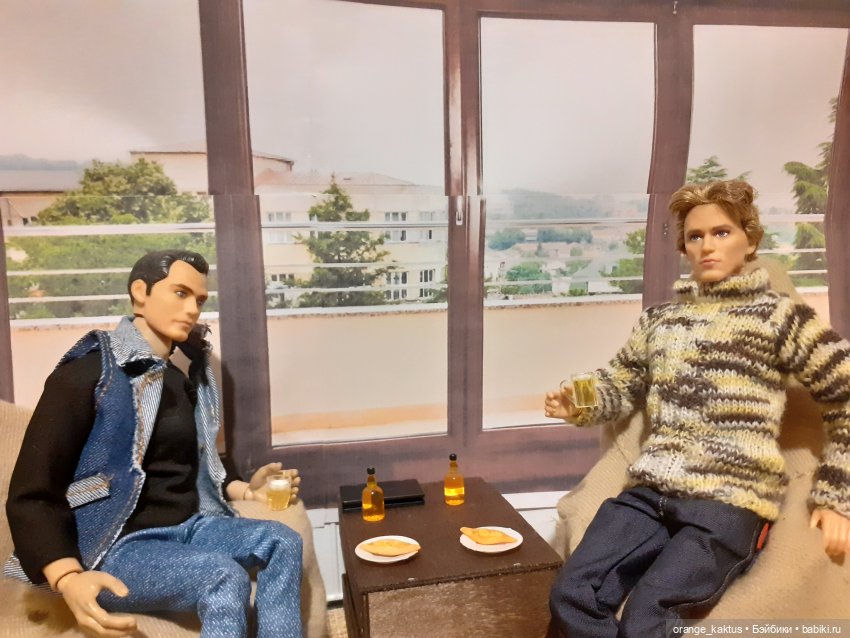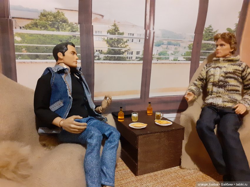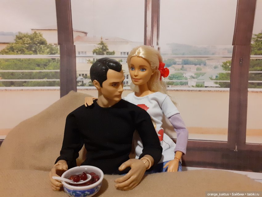Пришла я домой и решила, что раз самой не удалось, то хоть барбеек своих накормлю. Ну, и маленькая зарисовочка из жизни Миши Кактуса и Геры Финника)))