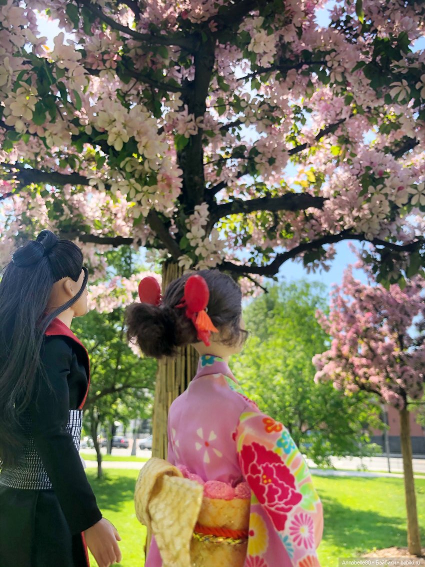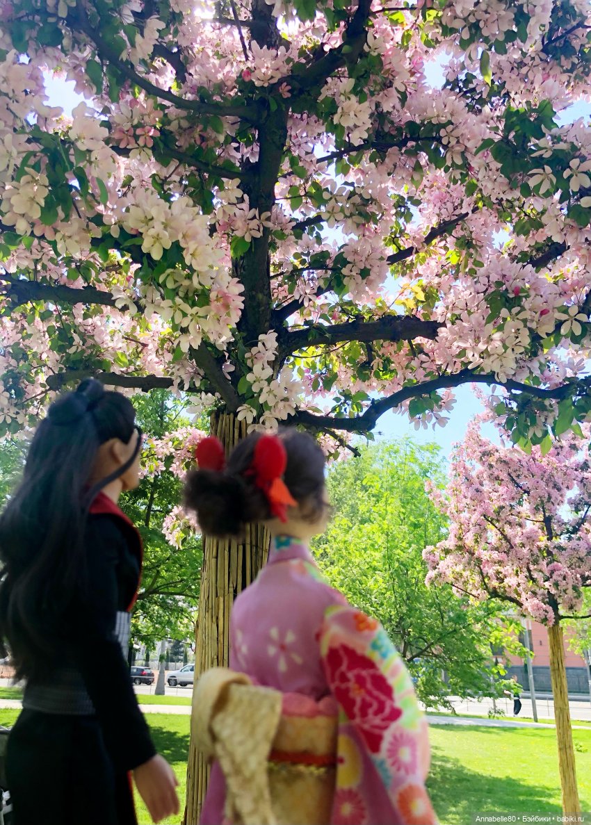 Я никак не могу перестать фотографировать кукол на фоне цветущих деревьев!:))