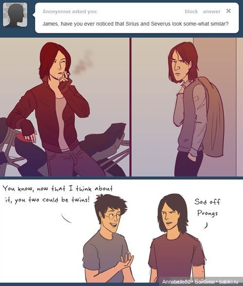 Из этого выводили и родство Джеймса Поттера и Сириуса Блэк.