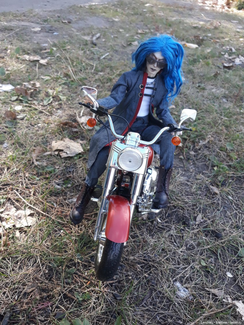 Первому родной пиджак раздобыла, второму жилет пошила. Вот и захотелось их нафотать. И тут Аня с байкер-пати. Пришлось импровизировать )).
