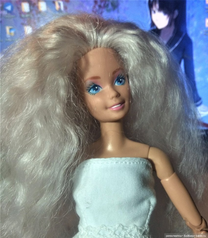 У меня есть ещё четыре куклы в очередь на прошивку. Одна старенькая и простая, но это подарок и дорогая для меня память, поэтому хочется подарить ей хорошие волосы. Вторая маттеловская, очень симпатичная, но с самого начала почему-то полулысая… И мне очень нравится её причёска, я бы просто хотела, чтобы кто-то добавил ей таких же локонов. А у нас почему-то мода прошивать прямым сараном в пол, что мне совсем не нравится.