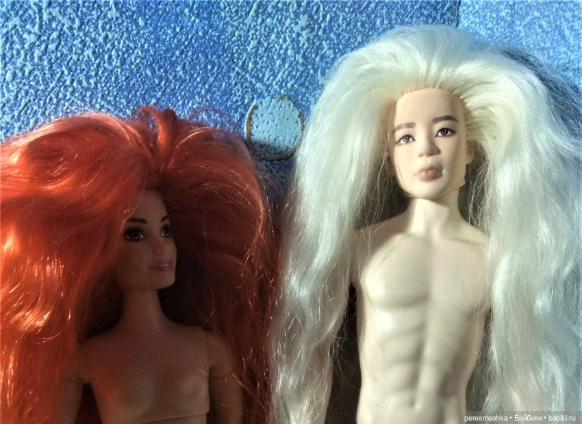 Ну, и ещё две красотки (кстати, близняшки!) по 16 см ростом — там вообще страшно подумать, как такую мелочь можно прошить… И тоже хочется повторить родные волнистые волосы до пояса, а не получить вот эту солому рапунцелистую. Короче, не знаю пока, что буду делать. Ищу мастера, которому смогу объяснить все свои тараканы)))