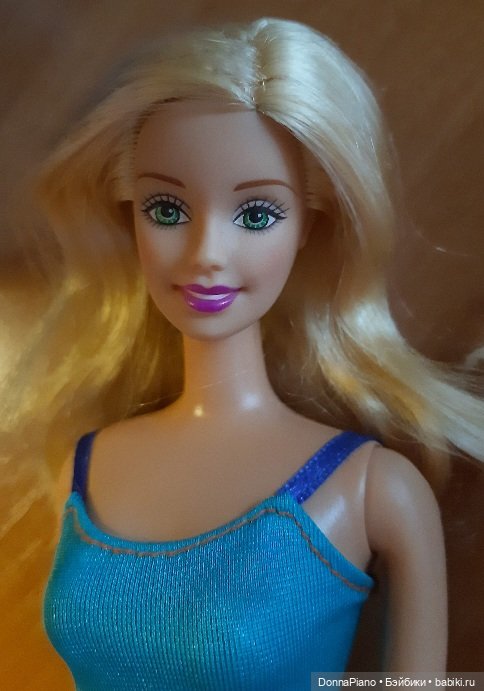 Эта красотка покорила меня своим лицом. Очень нежные и тонкие черты, при этом довольно яркая помада и выразительные глаза. Ей изначально не повезло с телом, так что она у меня тоже кандидат под пересадку. Но даже не это самое страшное: у Лоры настолько плохая прошивка, какой я ещё у Маттел никогда не встречала. Прямо сверху, спереди, голова буквально светится под жидкими волосами! При этом мне нравится, как задумана её причёска, такая симпатичная укладка с завитыми концами, и длина волос удобная, и оттенок медовый блонд очень приятный.
