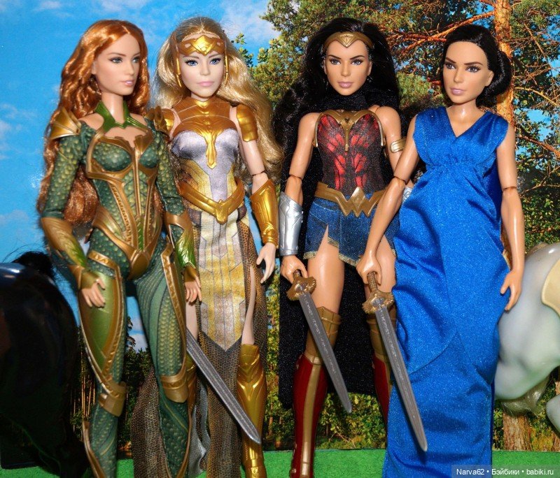 Так «воевать» отказались сразу 4 красавицы по фильму «Чудо-женщина»: сама Диана, королева Ипполита аж в двух образах — блондинки и брюнетки и Антиопа.